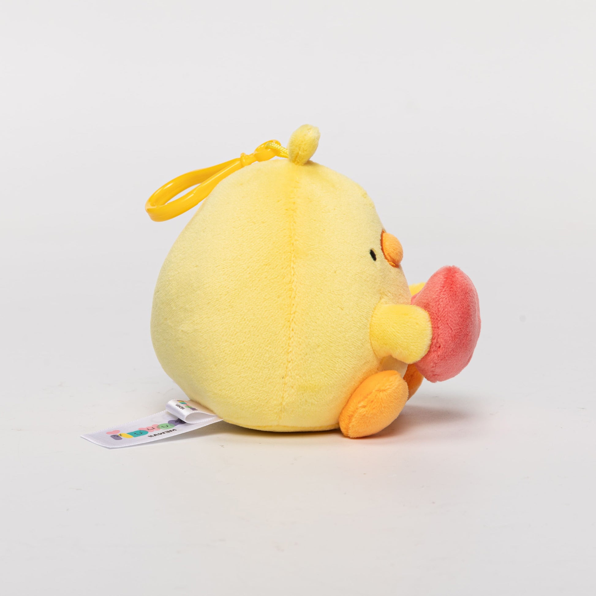 Meet your new emotional companion - a huggable Birb character! It has a buttery yellow body, charming bead - like eyes, an orange beak with tiny feet, and an iconic pink heart clasp. This ultra - soft pendant delivers instant coziness.